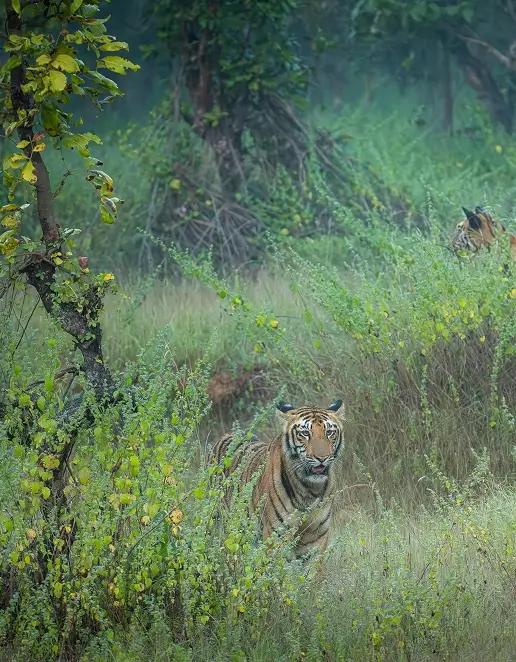 Sariska’s open meadows and shrublands paint a softer picture. These zones, often near water bodies, come alive during the monsoon with lush grasses and wild blooms. They act as feeding grounds for herbivores and attract numerous bird species such as partridges and peafowls.