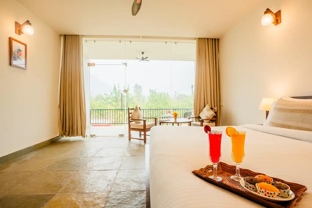 Both room categories maintain a relaxed, forest-retreat ambience, making the property a popular choice for guests comparing the best hotels in Sariska with premium forest retreats.