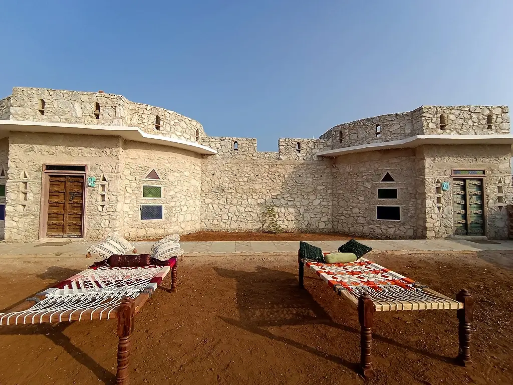 Each cottage at Sariska Kasba is designed like a traditional Rajasthani village home, with spacious layouts, earthy textures, and handcrafted details that bring warmth and character. Natural materials, soothing lighting, and open sit-outs create a homely yet refined experience.